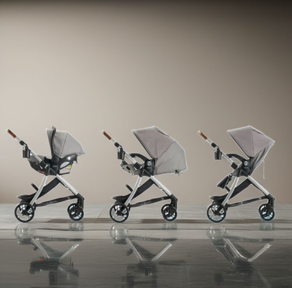 El cochecito cuenta con asiento reversible, permitiendo que el bebé mire hacia los padres o hacia el entorno. Su reclinación multiposición y el reposapiés ajustable aseguran mayor confort en todas las etapas.