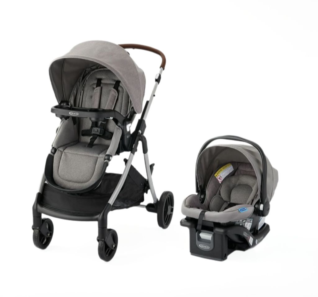 Incluye el asiento para automóvil SnugRide® 35 Lite LX, apto para bebés orientados hacia atrás desde recién nacidos hasta 16 kg y una altura máxima de 81 cm, brindando protección confiable en cada trayecto.