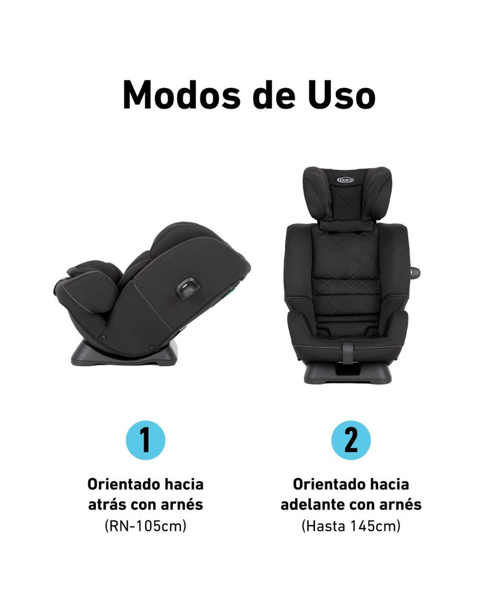 • Permite que el niño viaje mirando hacia atrás por más tiempo, la posición más segura según normativas europeas.