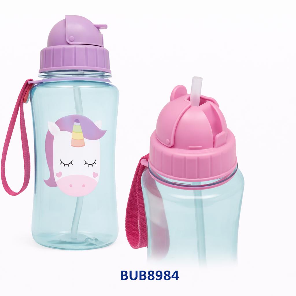 BUBA BOTELLA C/PAJITA Y TAPA ANTI-DERRAME 350ML UNICORNIO