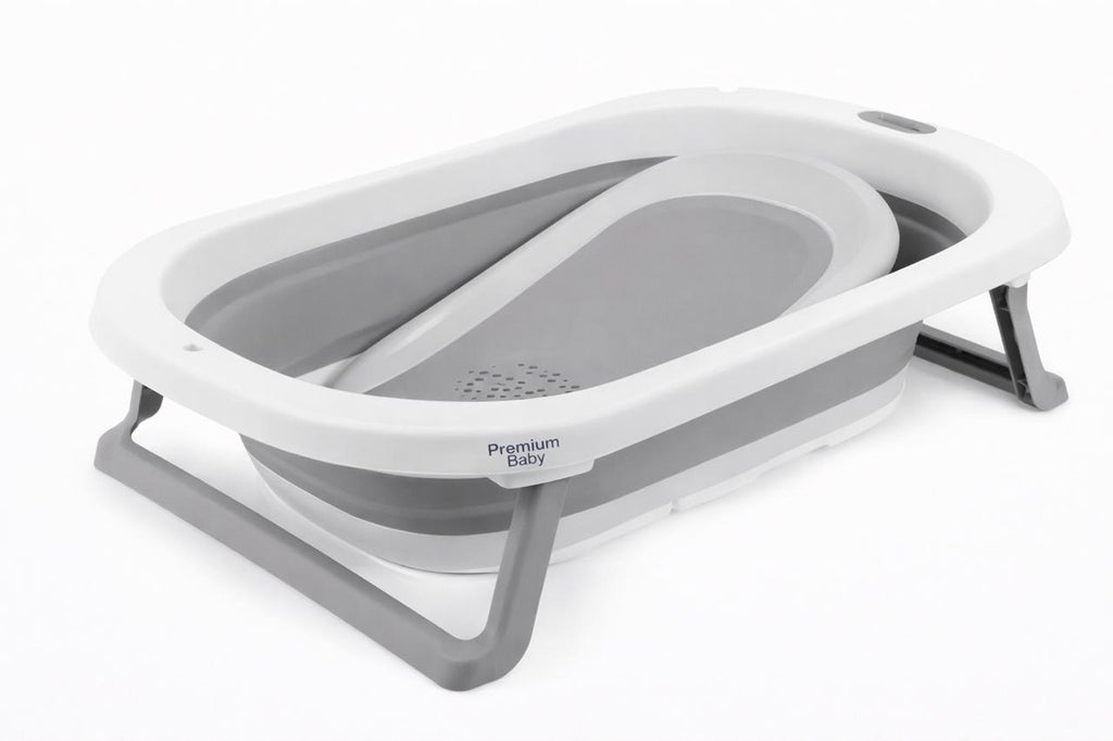 Bañera Plegable con Reductor - Material ecológico y resistente al frío. Reductor para poder bañar a tu bebé de manera cómoda desde los primeros meses. Patas con antideslizante. Profundidad y reclinado regulables. Tapón para drenaje rapido.