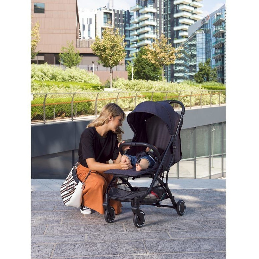 Su respaldo es completamente reclinable y se puede ajustar en múltiples posiciones. Con ventana en red en la capota para poder ver al niño y barra delantera con abertura frontal para colocarle fácilmente. Homologada desde el nacimiento.