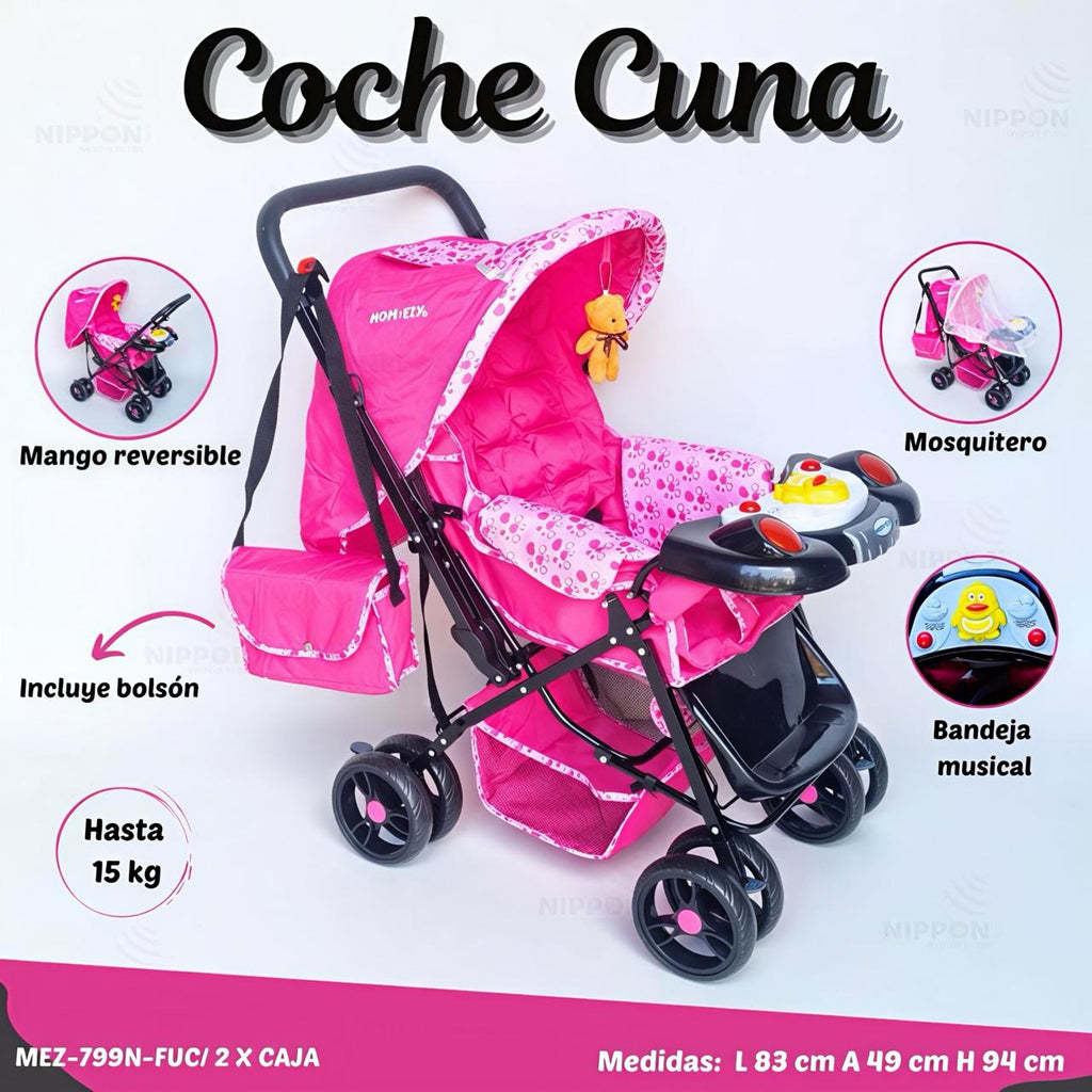 MOM-EZY CARRITO CUNA+MANGO REVERSIBLE+BANDEJA MUSICAL+MOSQUITERO+BOLSÓN-R.N-15KILOS