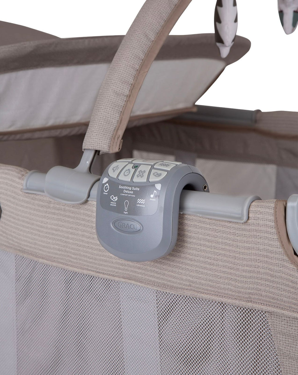 acompañarte desde el nacimiento. Incluye moisés desmontable para los primeros meses, cambiador con superficie fácil de limpiar y una unidad de control que ofrece música, vibración y luz nocturna para calmar al bebé.