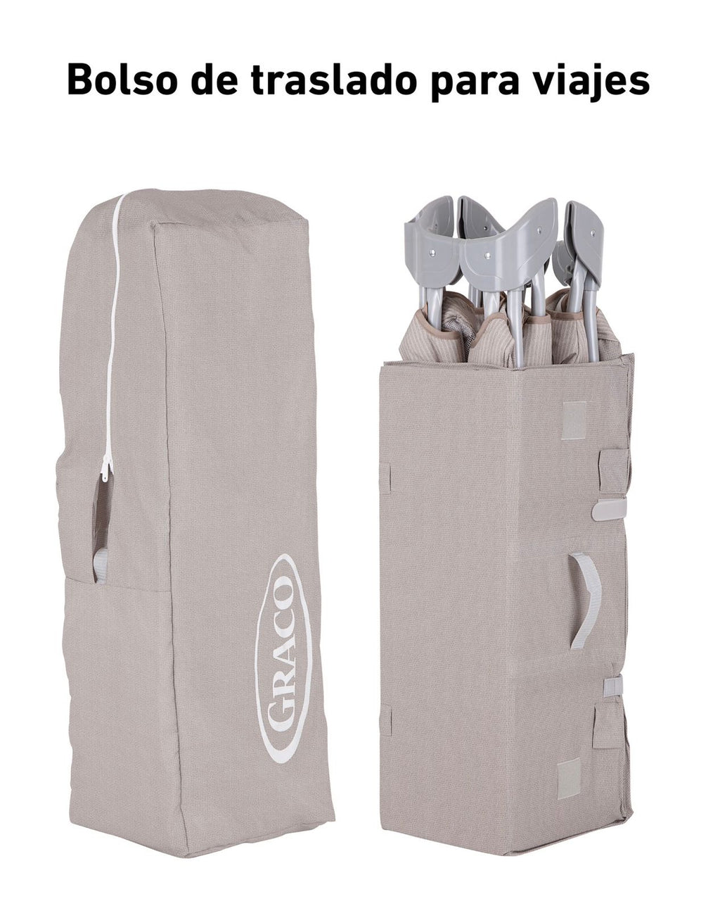 permiten vigilarlo desde cualquier ángulo. Gracias al sistema de plegado con botón Graco y sus 2 ruedas, se traslada y guarda fácilmente.