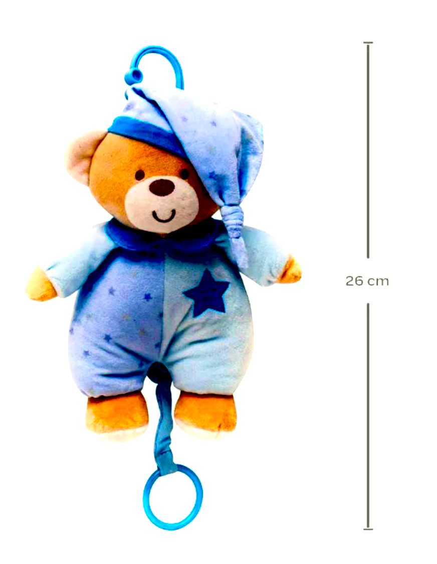 reproduce una melodía de cuna, ayudando a relajar y acompañar el sueño del bebé. Con medidas aproximadas de 22 × 11 × 26 cm, es liviano y fácil de colocar en la cuna o en la habitación infantil. Además de ser un compañero acogedor, aporta un toque decorativo encantador al cuarto del bebé, combinando ternura y funcionalidad.