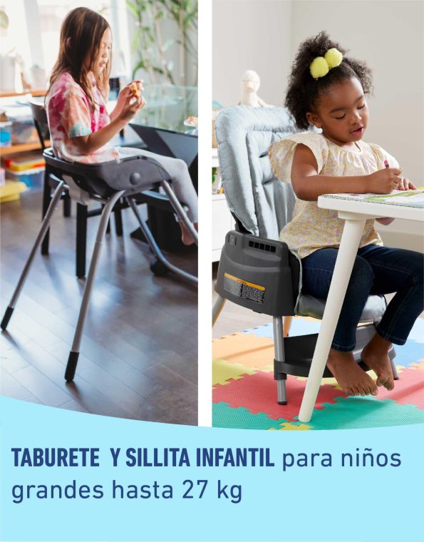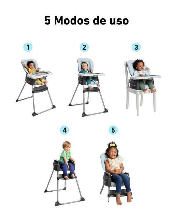 - 5 sillas en 1: incluyendo reclinable para bebés, silla de comer clásica para bebés, elevador para niños pequeños, taburete para niños grandes y sillita infantil.