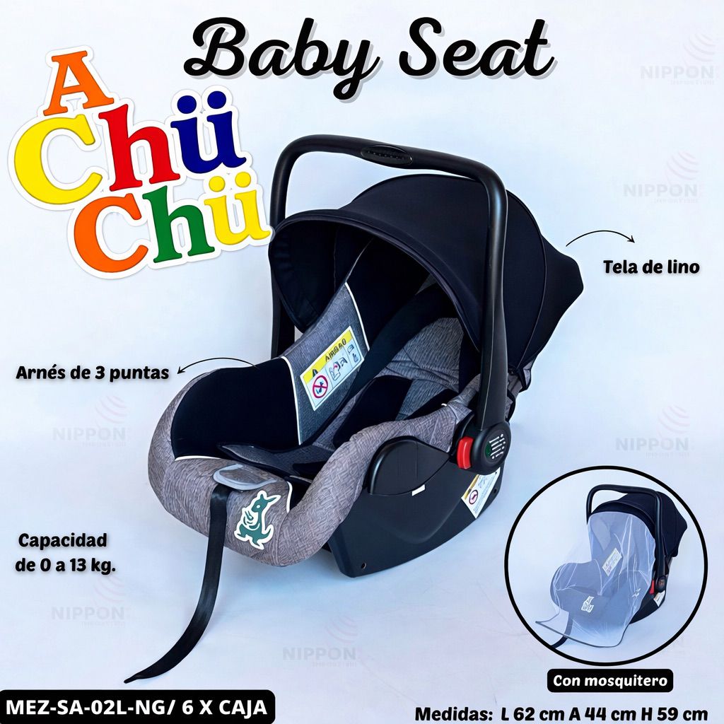 Con un estilo moderno y acabados premium, esta sillita porta bebé fue pensada para acompañarte en cada salida, brindando protección y confort en todo momento.